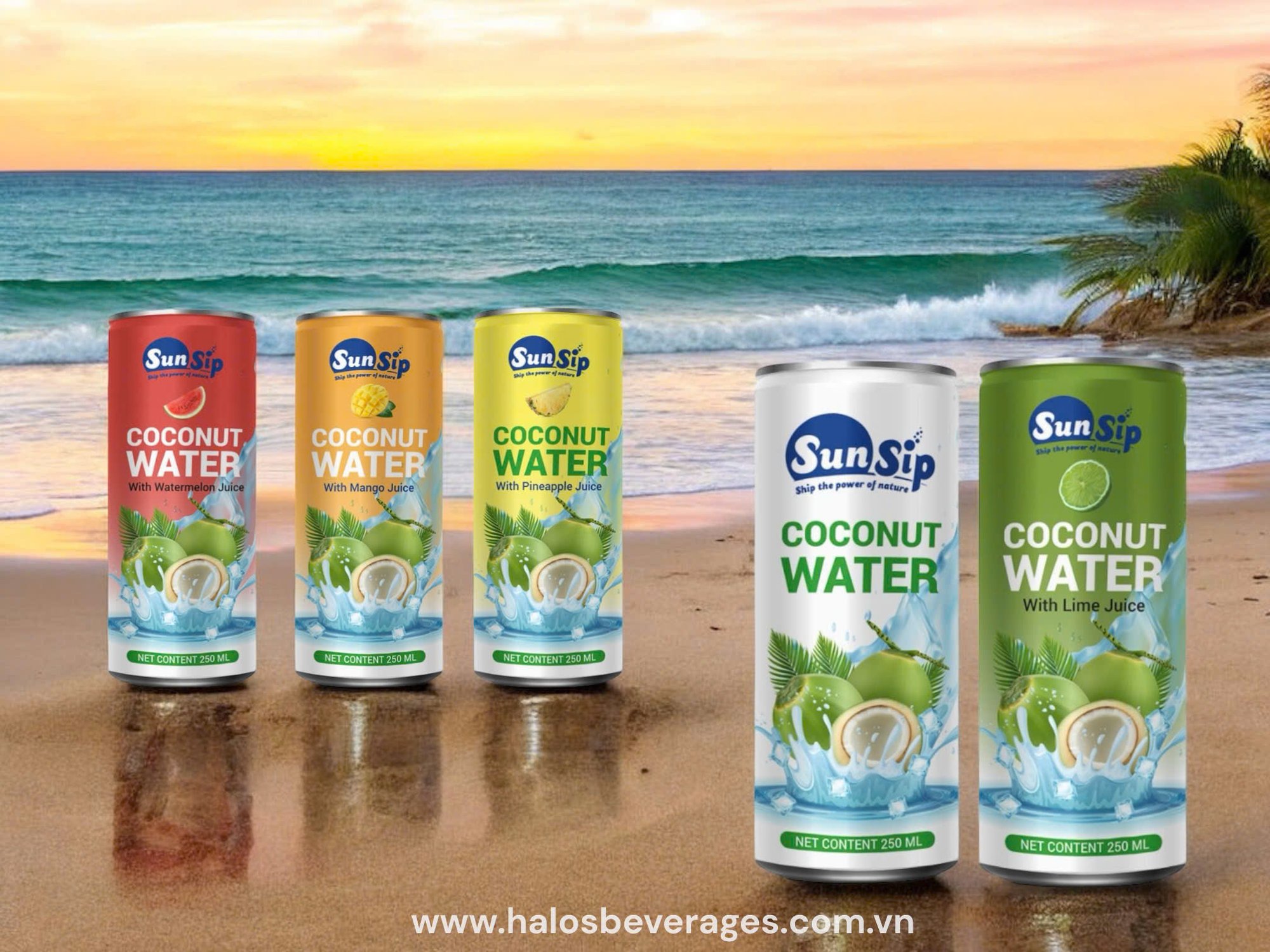 SunSip is not just a beverage, but also a sophisticated combination of nature and modern technology, meeting all international standards. Each can of SunSip Coconut Water contains the essence of fresh coconut, combined with other delicious tropical fruits such as watermelon, lemon, pineapple and mango.