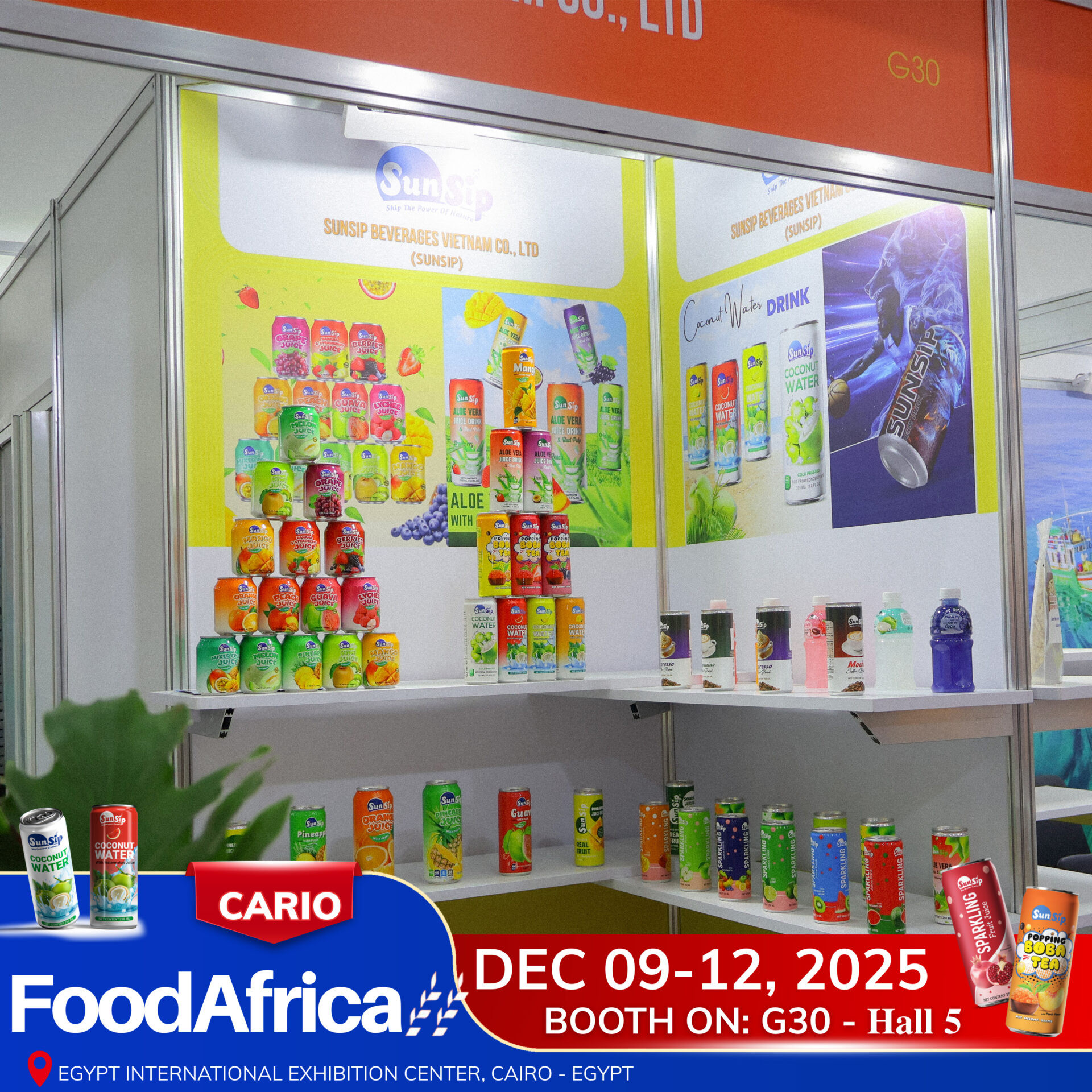 Food Cairo 2025 is officially taking place — one of the most anticipated food and beverage exhibitions in the Middle East and North Africa (MENA). As the event gathers manufacturers, distributors, and international buyers under one roof, Sunsip Beverages Vietnam proudly joins the exhibition with a clear mission: ‘ Bring high-quality Vietnamese drinks closer to global customers and expand Sunsip’s export network across Africa, the Middle East, and worldwide’.